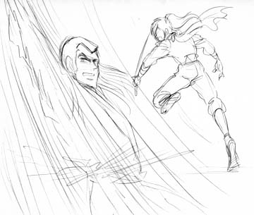下の絵に描いてあるふきだしのセリフは、実際のアニメーションで使用されたものとは違い、単なるいたずら書きとなっている。次のページはこのラフを元に起こされた原画。